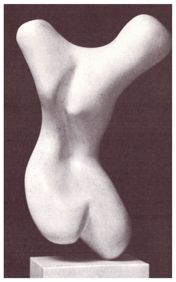 • Hans Arp, con sus formas blancas abstractas (en yeso o piedra), con que sugiere seres biomórficos (“Tronco”, “Concreción humana”)
