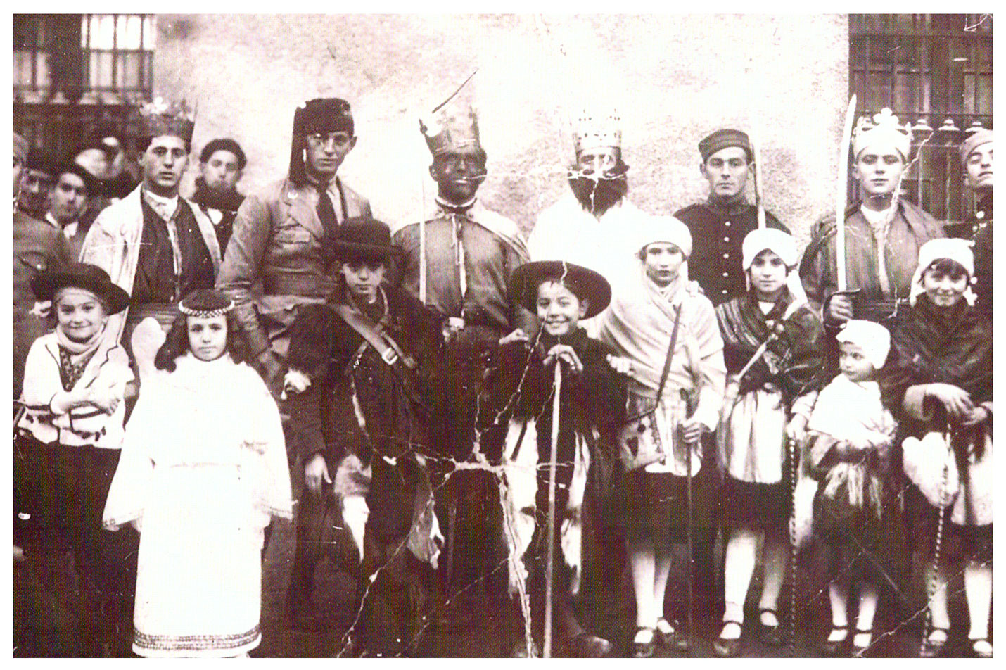 Imagen de la portada: Pastores y zagalas en la representación de 1958. Todas las imágenes han sido tomadas del libro dirigido por Arturo Navallas Rebolé Sangüesa. El Misterio de Reyes, 1900-2000, citado en la bibliografía.