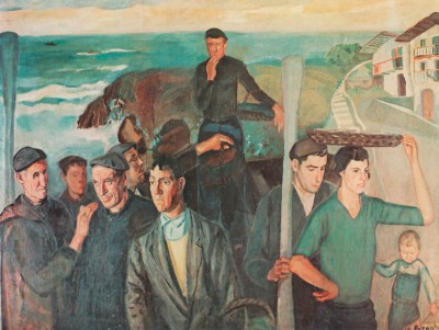 Y hasta tal punto ha multiplicado Bienabe sus talentos, que, en la representación de lo humano, nos ha dado lienzos tan sublimes como “Regreso de la pesca”, en el que la resignación de los hombres ante la desgracia amenazante de las familias marineras –el peligro de naufragio- contrasta vivamente con la revoltura del oleaje espeso y la serenidad de los rostros que contraídos esperan un desenlace; u otras manifestaciones artísticas, donde el pintor se ha dedicado a recoger –unas veces con ánimo costumbrista, otras con deseo íntimo- escenas de trabajo, de familia, de descanso, de rezo o de diversión, siempre procurando alcanzar el alma de las cosas. Puede decirse que el hombre, al ser tomado por Bienabe para pasar al lienzo o al papel, siempre se ha dignificado, ha ganado en hondura.
