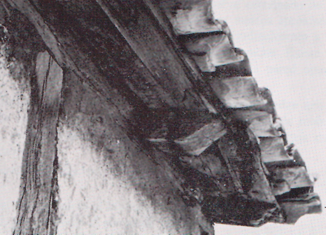 En cambio, la solución dada al tejado no se diferencia sustancialmente en ambos grupos [40], siendo a dos aguas. Los hórreos del primer grupo, y entre ellos el de Izal, de menores proporciones, emplean el sistema de parhilera para formar la armadura de la cubierta, contrarrestando el peso y afirmando las masas con tirantes interiores de imaginativa invención. Se dan variantes en la inclinación del tejado, desde los más inclinados de Aézcoa [41], que aún emplean la tabilla de haya [oholak] y la teja plana cerámica, hasta los de menor pendiente, desde Salazar al nivel más meridional de localización, con teja canal.