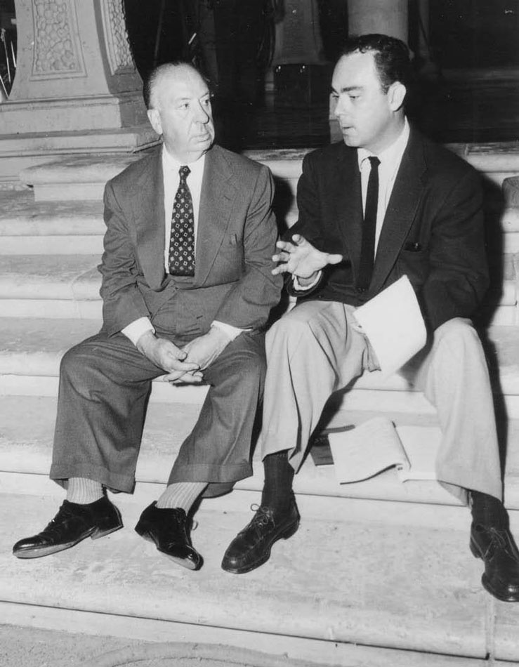 Alfred Hitchcock con el guionista John Michael Hayes en el transcurso de la preparación de «La ventana indiscreta».